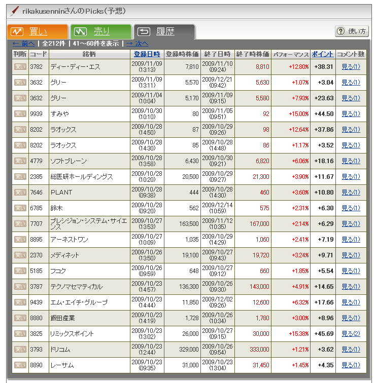 私の60回分の予想履歴です