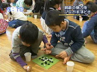囲碁の魅力を知って欲しいと、プロ棋士が園児たちを指導しました。