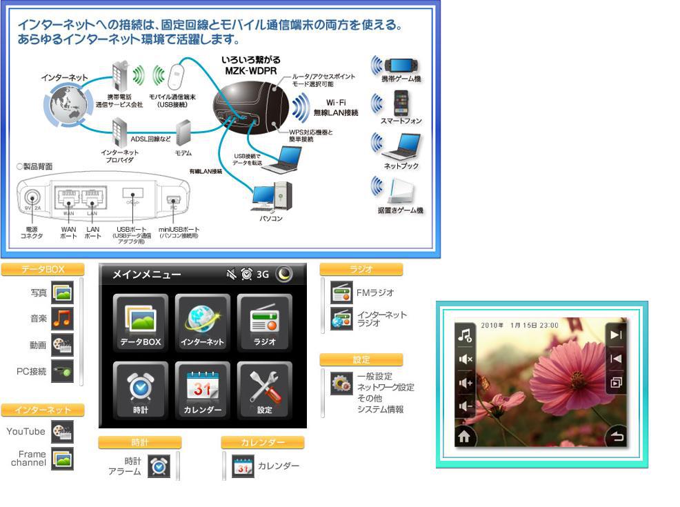 画面には、カレンダーや時計の表示も出来る。形も可愛い?
