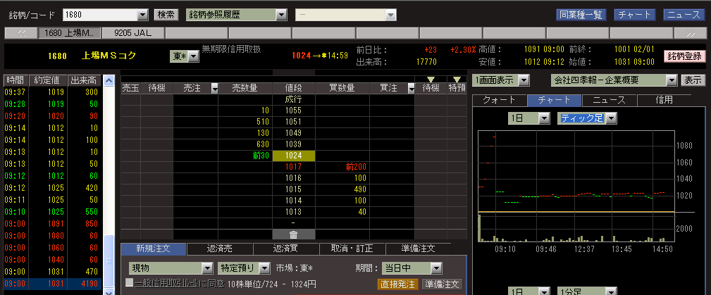 上場MSコク(1680)ETFの寄り付き直後