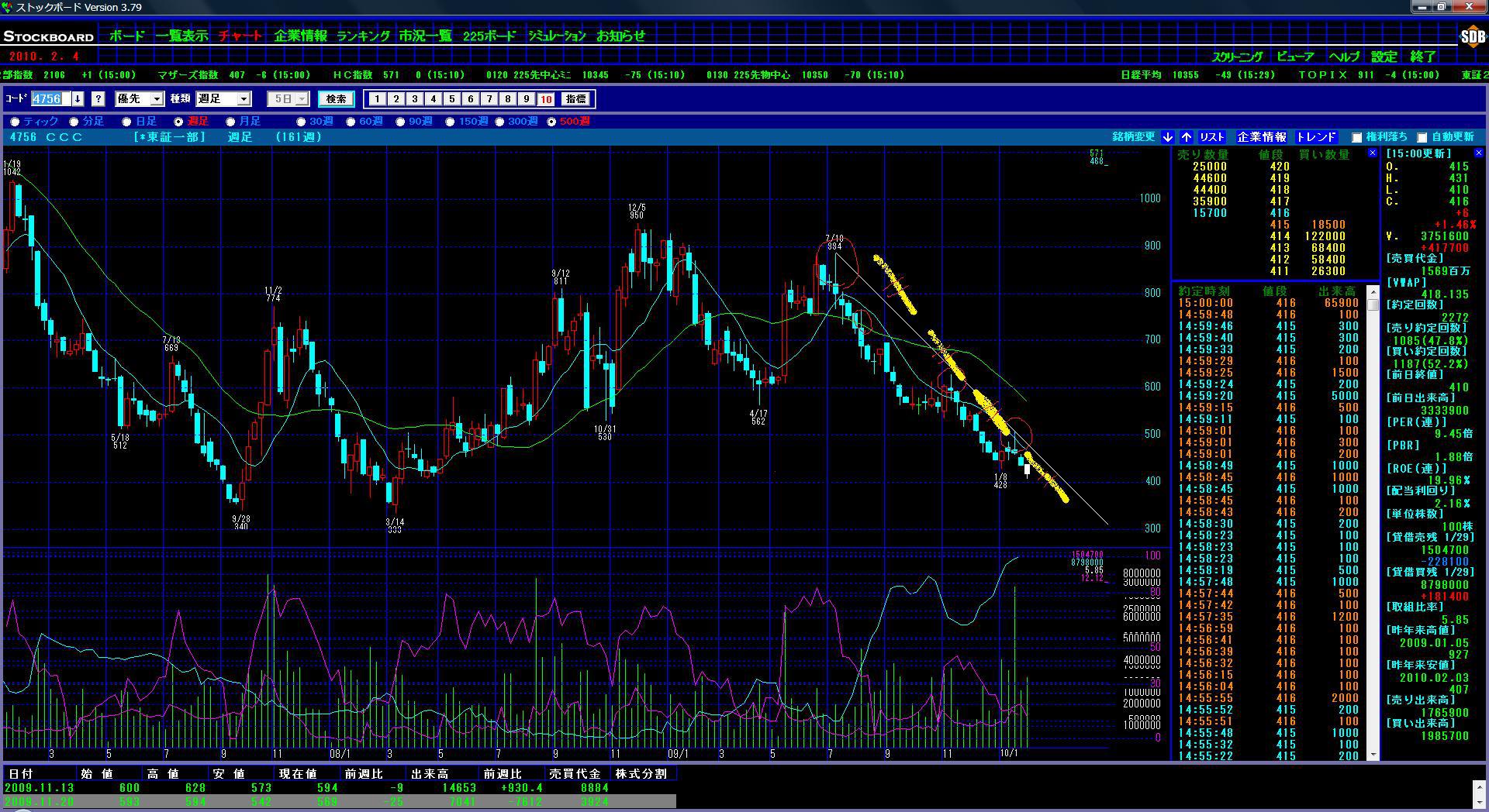 同程度の値幅が普通だと思われますので今回仕込まれた空売りの利益確定は350円あたりを予測します。