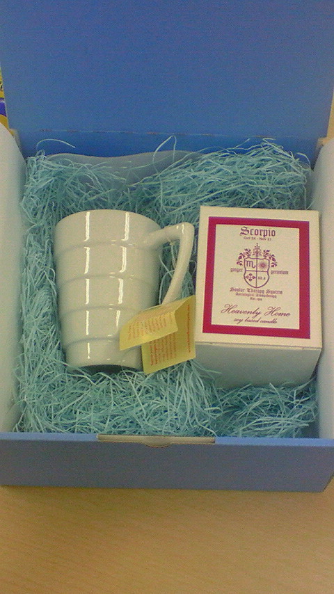 素敵なカップと、とっても良い香りのするキャンドル(写真右)です。