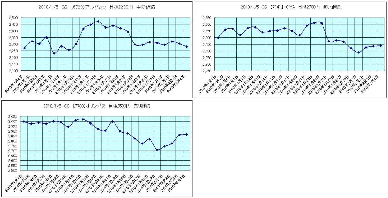 2010/1/5 GS 【7733】オリンパス 目標2300円→2500円 売り継続