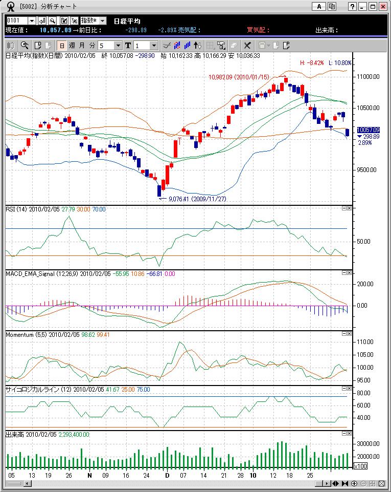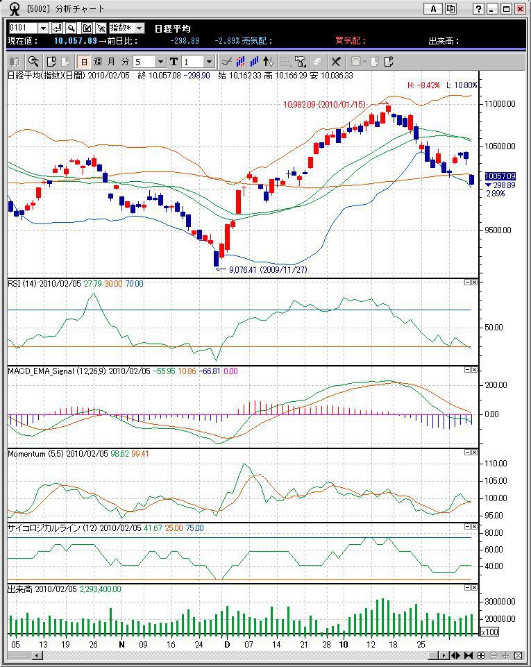 日経先物は1万円割れして、プリウスのリコール問題、為替変動などで、不安材料も多い週になるでしょうが、買い買い病が出てきそうな週になりそうですばい~