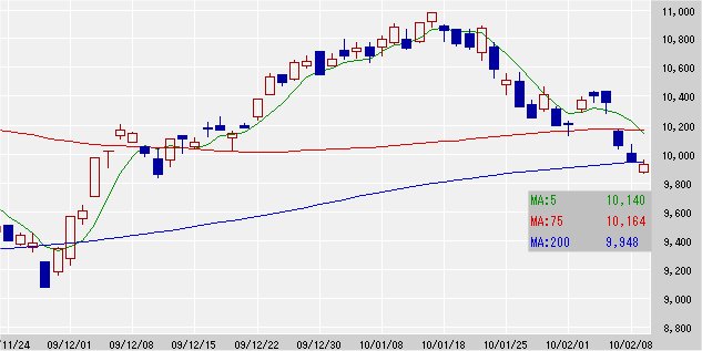 200日移動平均線 9,948↑