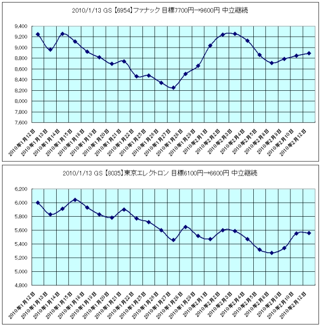 2010/1/13 GS 【6954】ファナック 目標7700円→9600円 中立継続