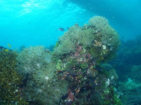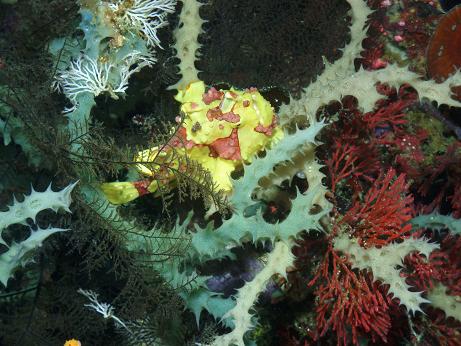 ギンガメアジの群れから離れると、クマドリカエルアンコウやニチリンダテハゼなどもいました。