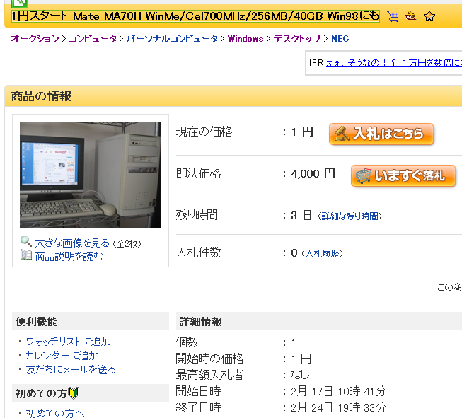 他の誰もが入札しない場合、1円で落札できます
