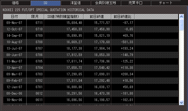 ・今日は、11月限オプションSQでした。SQ値は15684.40円。前月SQ値から-1800円くらいですね。8月以降はSQ値が一ヶ月ごとに大きく動くので、オプションやってる私としては対応が大変です・・・。