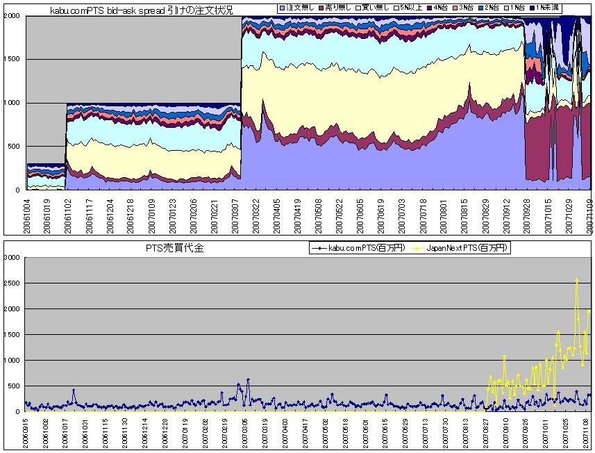 kabu.comPTSの引けの注文状況と、売買代金のグラフです。