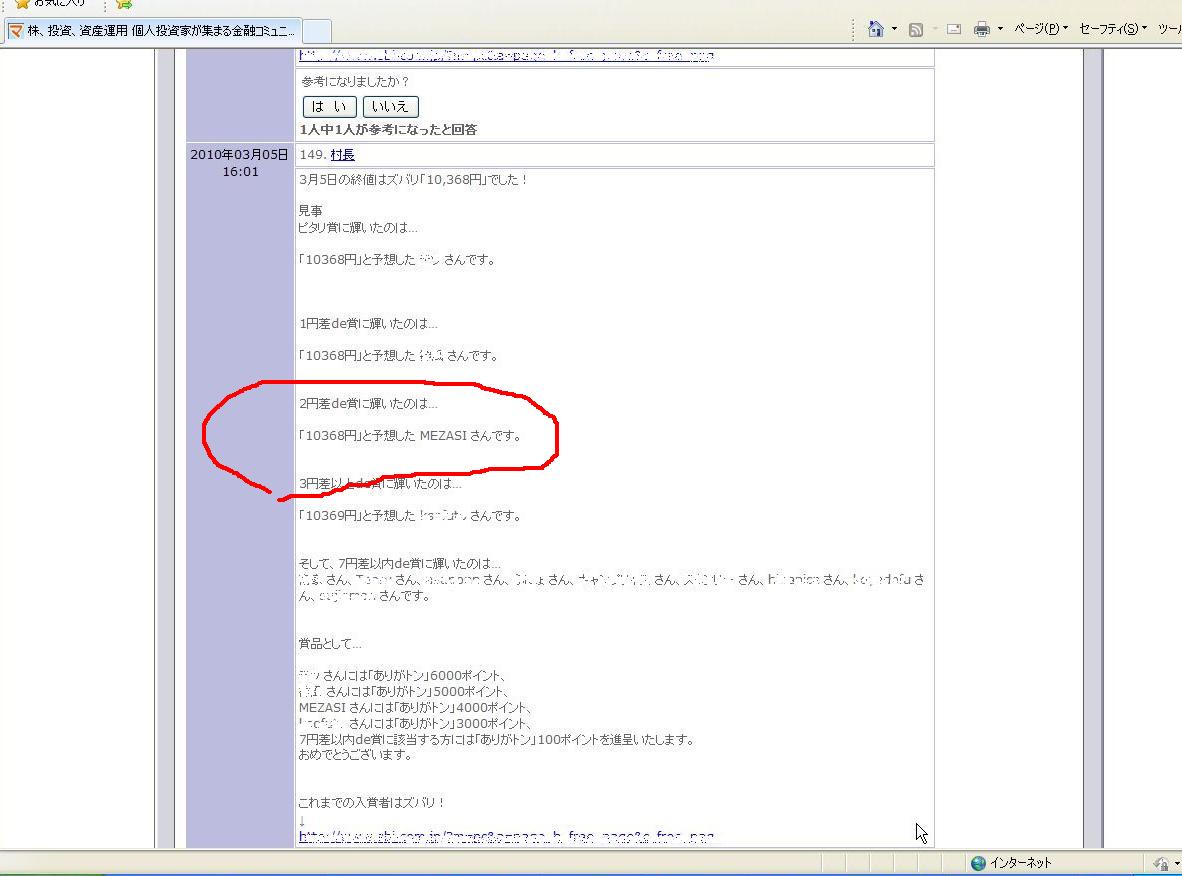 SBIマネーワールドには、毎週金曜日の終値を水曜日24時までに予想するコミュニティがありますが、なな何とドンピシャでした。
