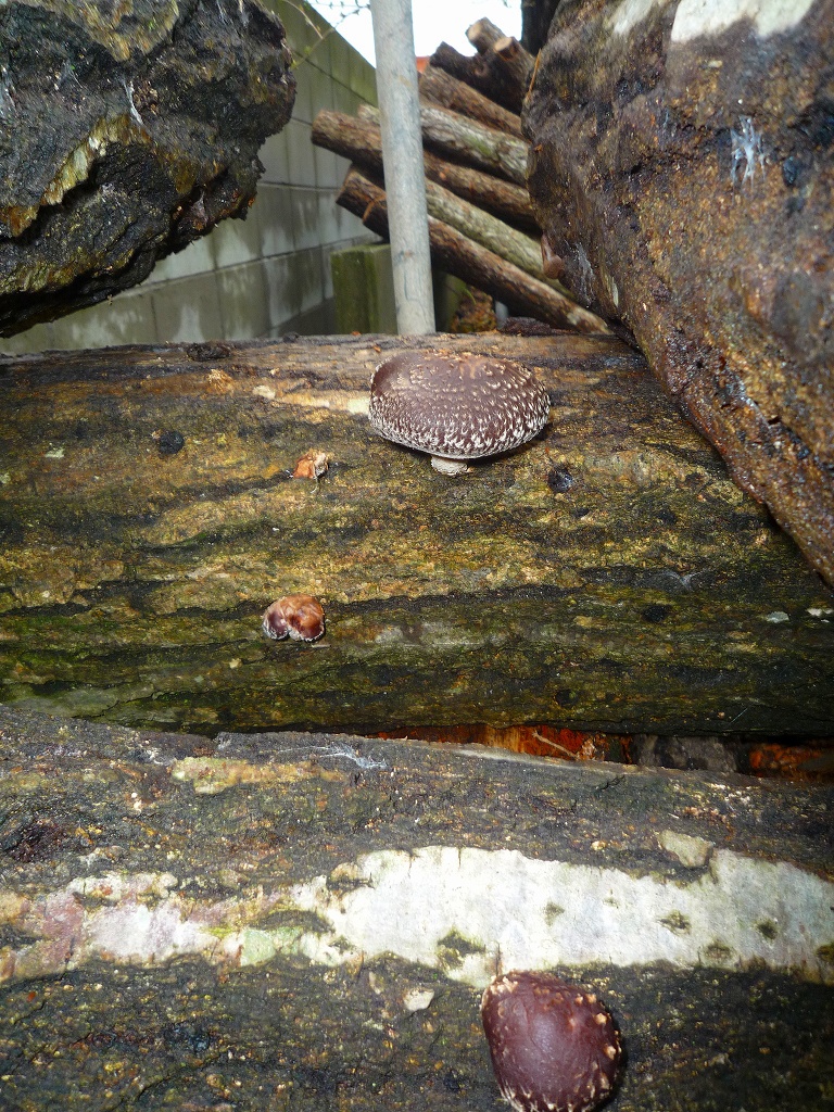 しばらく暖かく、一昨日から雨が降ったので、しいたけが生えていた。