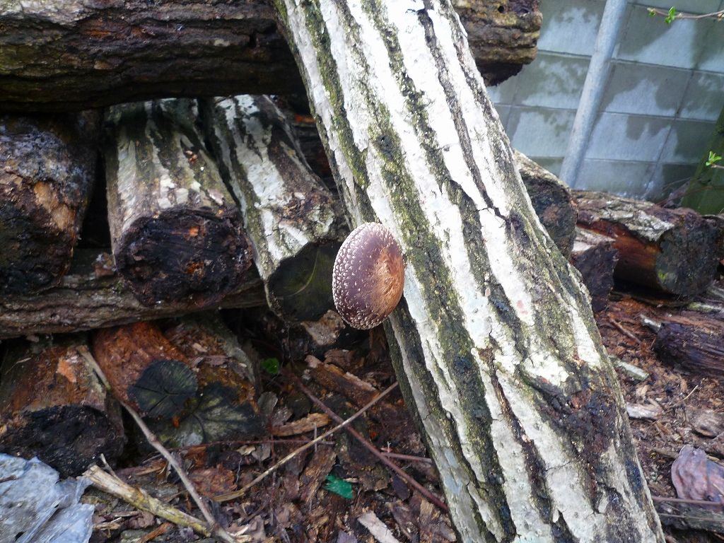 5年前に菌を植え付けたジャンボしいたけ。今年が最後かも。これまでありがとう。