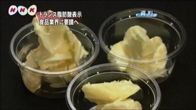 これについて日本マーガリン工業会は「日本人がとる脂肪分は少なく、食生活が乱れていなければトランス脂肪酸の摂取量は問題にならないことは国の食品安全委員会でも、すでに報告されている。トランス脂肪酸の表示の議論が進むと混乱するのではないか」と話しています。