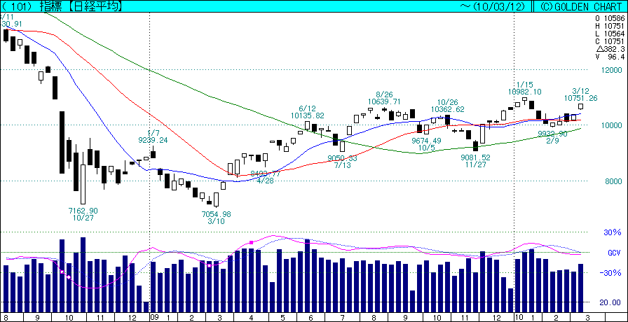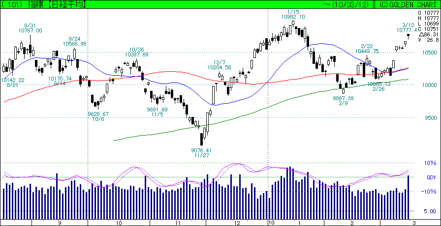 思えば3月4日が一番の買い場でござりました。それから一週間で一気に上がってしまったので、やはり相場は生き物と申しましょうか。つくづく買い時、売り時は難しいものなりと思うばかりでござる。