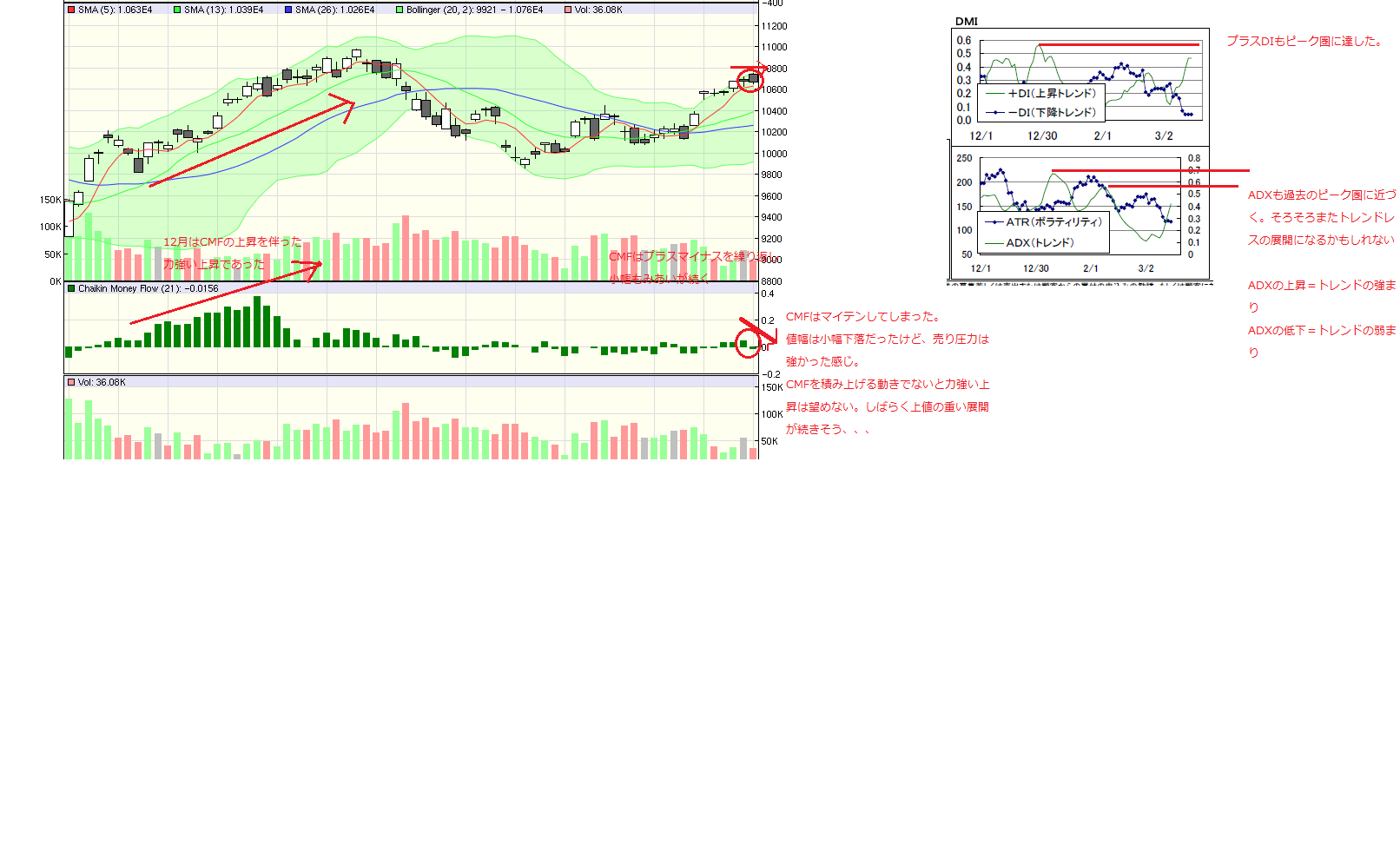 ・ADXが現在上昇してるけど、過去のピーク圏まで達したらADXの低下により、またトレンドレス相場になるかもしれない。