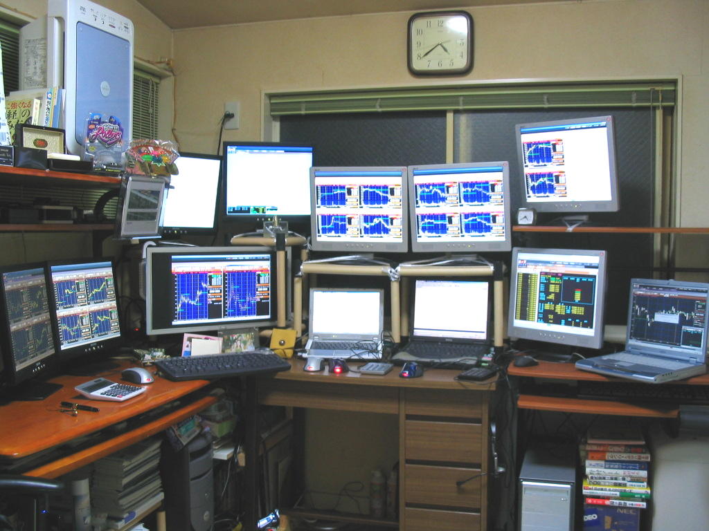 すごいなーと思ったのが、ヤクザのディーリングルーム。普通にモニターが何枚もあって、雇われたデイトレーダーみたいな人がカチカチやってました。あの人、待遇良さそうですけど、ノルマみたいなのもきついんだろうなー。ちょっとした事でミスしちゃってそれを取り戻すために無茶な取引を・・・なーんて事になんなきゃ良いですけど。インサイダー取引も簡単に出来そうな雰囲気でした!良く言う「大人」の中にはあんな人達も混じってるんだろうなー。と考えるとやはり相場は魑魅魍魎の世界ですねー。あな恐ろしや。