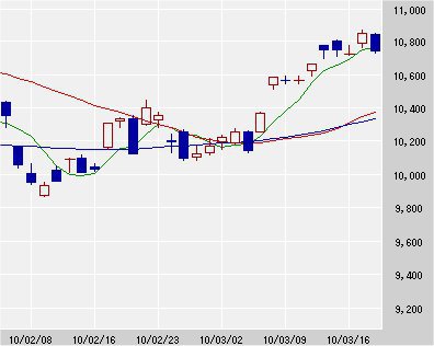 5日移動平均線 10,763↑