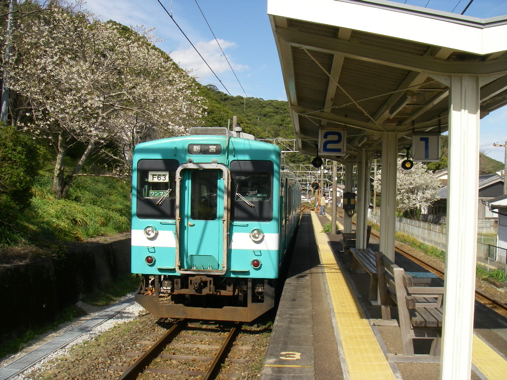 新宮行きの電車が止まっている駅に、