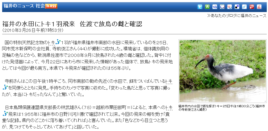 いま当地では、トキ写真ゲッターがキョロキョロで、