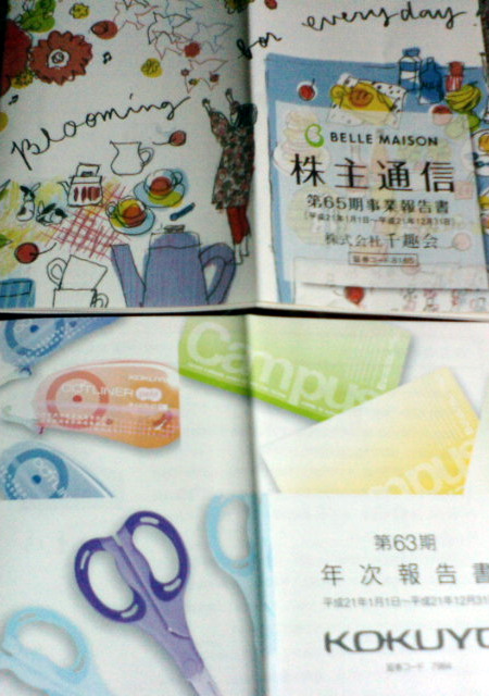 コクヨと千趣会から報告書届いた。