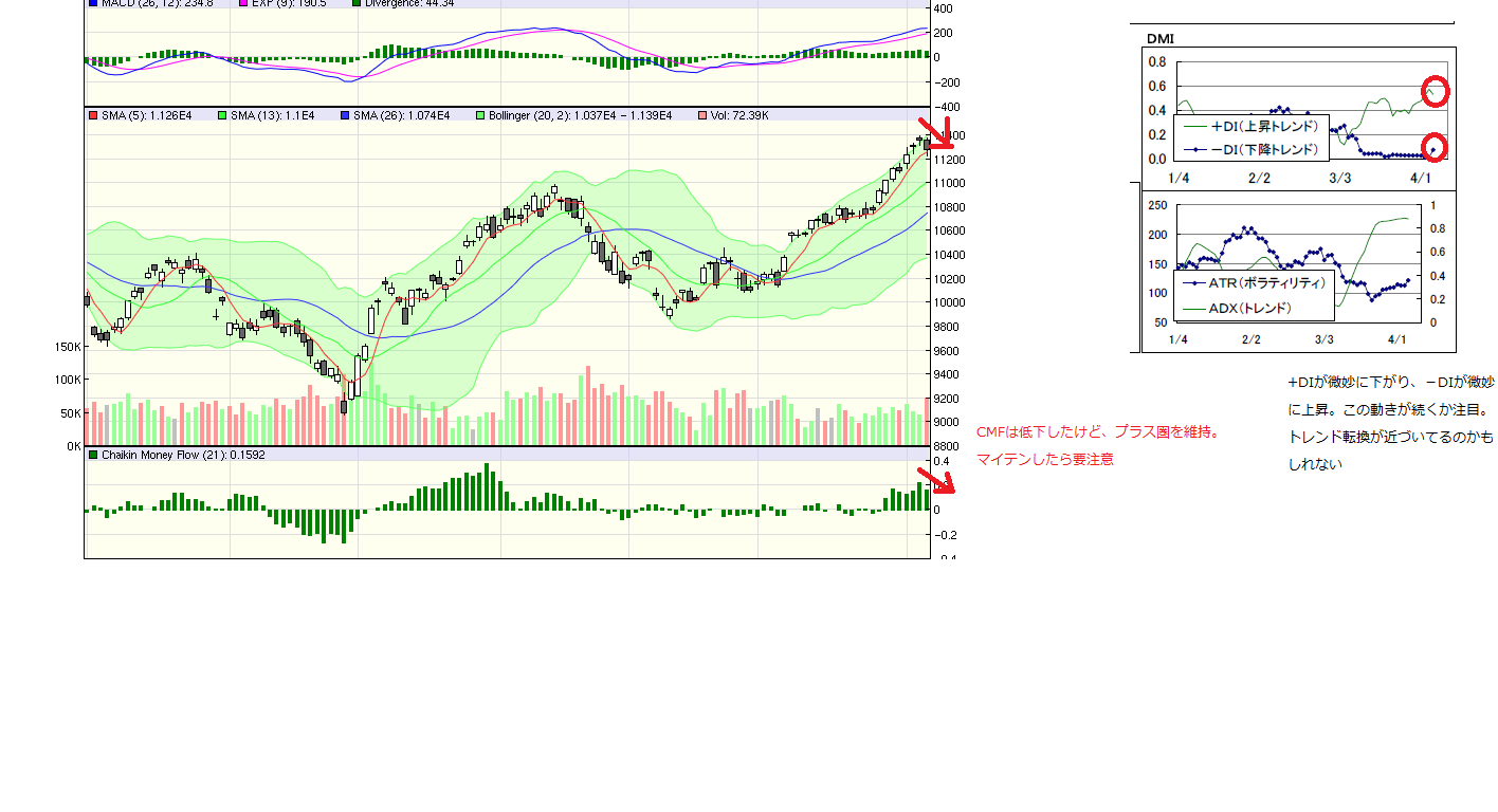 DMIに注目。+DIの下落とーDIの上昇が気になる。