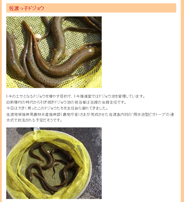 写真1:トキの生き餌のどじょう http://toki-sado.jp/blog/2006/03/