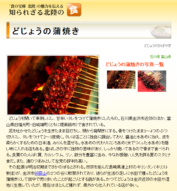 金沢と富山県福光町、城端町は、今でもどじょうのかばやきを販売してます
