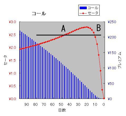 具体的には、A点が期先のコールを、B点が期近のコールを表すことになる。