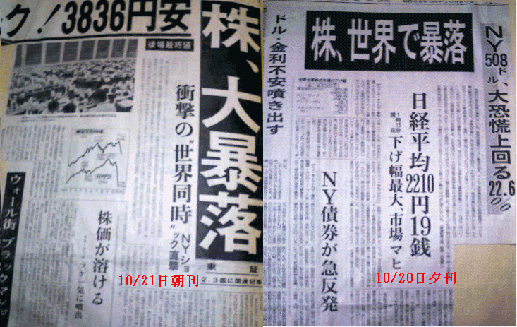 1987年10月20日、日経平均は3,836円 (14.90%)下げました。