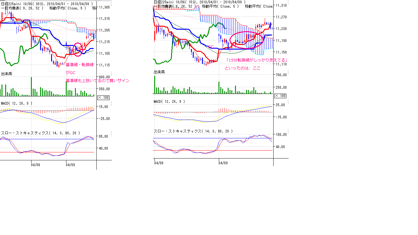 個別銘柄チャートと日経平均先物チャートをあわせてみるってことですね^^;