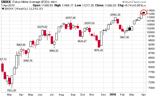 NKは日足、週足(昨日まで分)でブラックキャンドルが出現。