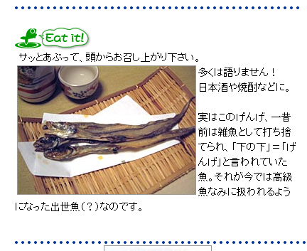越中の富山湾だけで獲れるゲンゲは、魚の中でも、下の下、魚の下道衆です