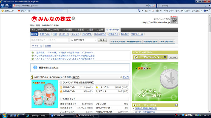 日記を投稿すると何時までも投稿した旨のメッセージが表示されます。