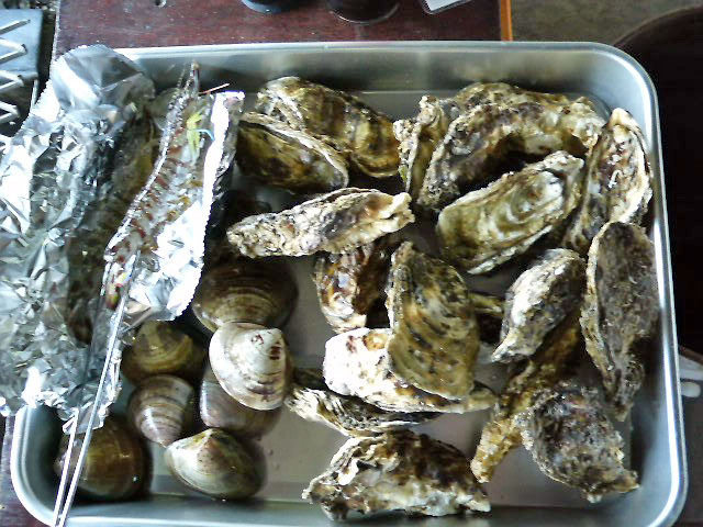 一盛1000円のカキの山っ♪活きの良い車えび&大きなハマグリも選んじゃいますた♪ハイ