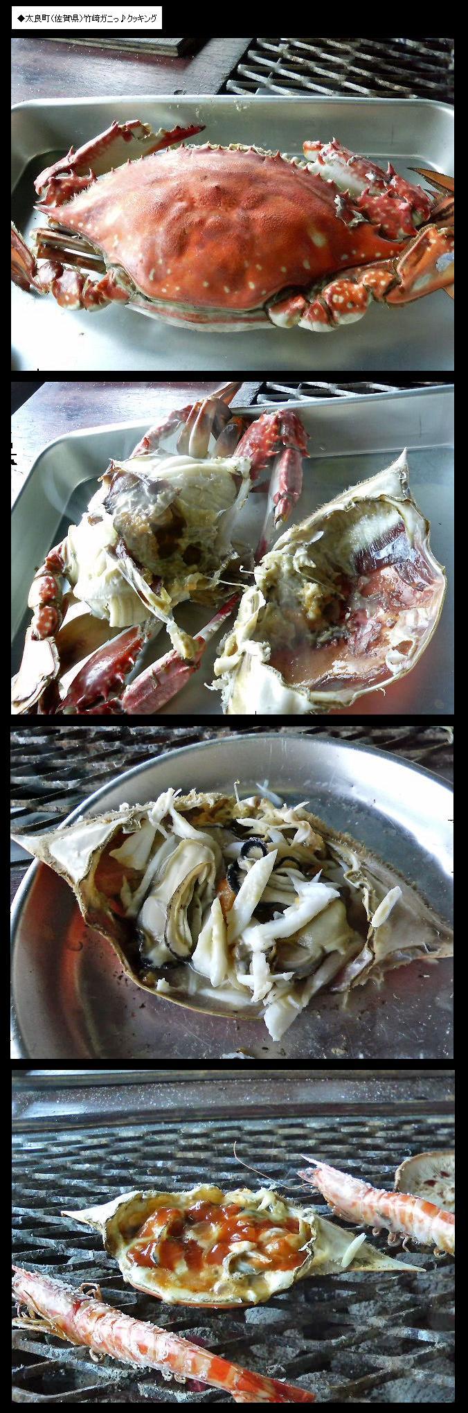 続いて、名物竹崎ガニ(渡りガニ)をマコが入ってるメスを選んで、網焼きじゃwえけらけらけら