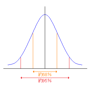 (さらに2倍の幅にすれば約95%が当てはまります。)