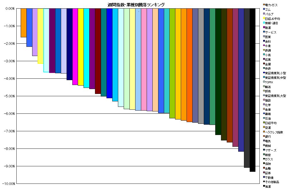 1.電力・ガス -1.64%(-0.62%)