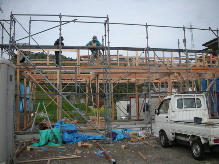 後は、駐車場の舗装工事と中がチョコッと残ってました。