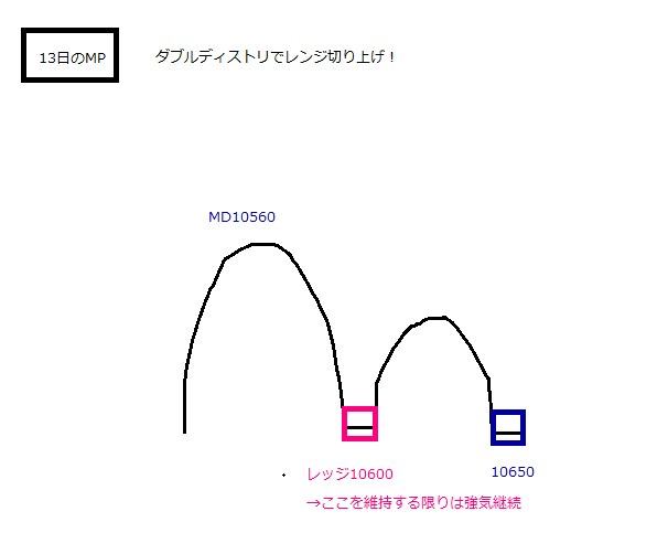 DDのレッジ10560をうめ、上方にあった10640もうめたので、MP上は強気サイン