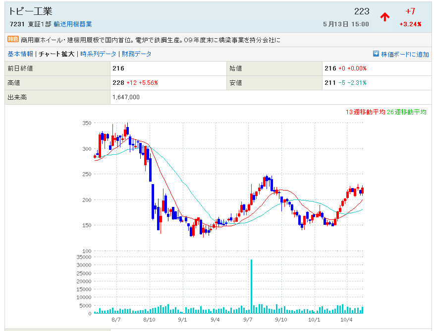 本日の楽天証券のニュースで、7231:トピー工業をとりあげてます