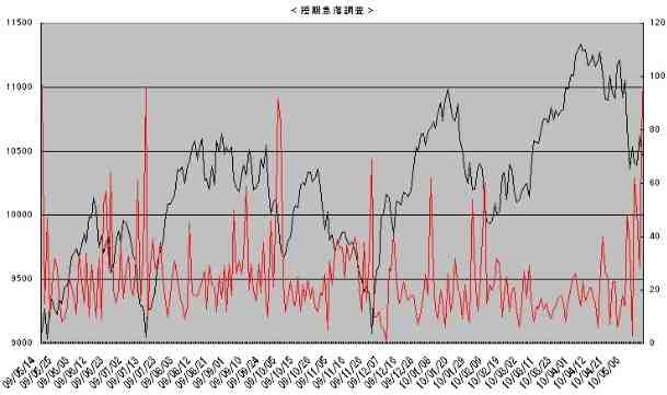 短期急落調査のグラフが90を越えるとリバウンドの可能性が高い。