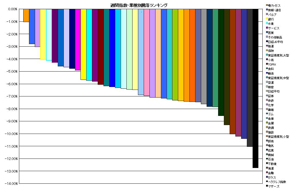 週間 指数・業種別騰落ランキング