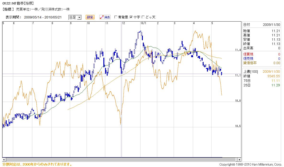 またNT倍率は11/27の水準まで下がっているのに対して、NKはまだ十分上にある。