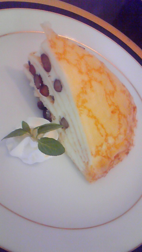 今日のデザートは、お豆の入ったミルフィーユケーキでした。