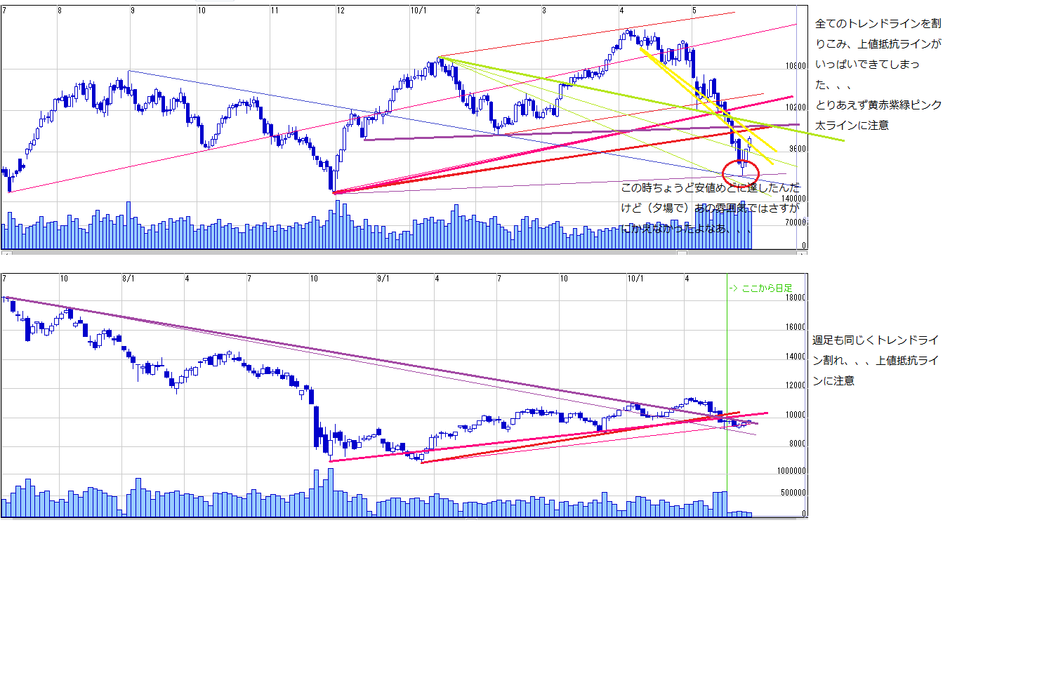 月曜日は外国人プレーヤーがお休みなので、買い支えモードの国内勢の買いで上がるかもしれませんが、月曜日の上昇が大きいほど火曜日からの外国勢の売りを誘うことにつながり、9000円割れに向かってしまうのではないかと危惧しています。