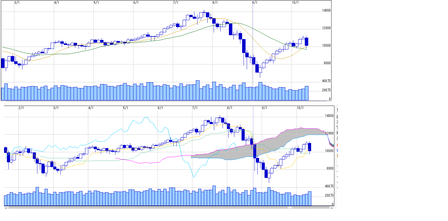 ☆投資家心理は日足だと弱気のピークをいったんつけた感じだけど、週足でみると、まだまだ楽観、、、