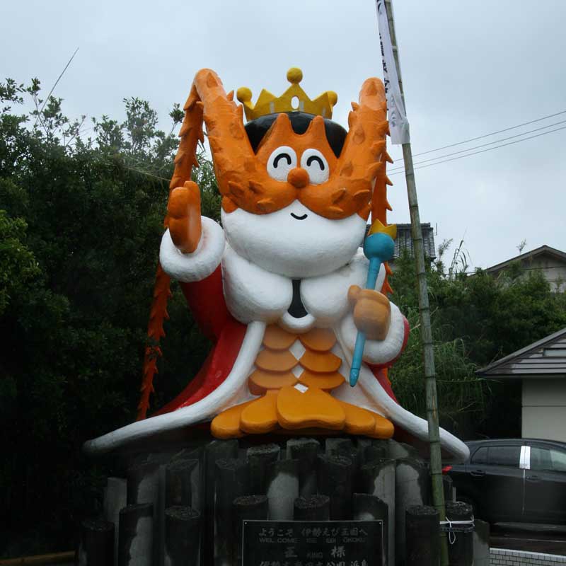 ある人は、このユーモラスな伊勢えび大王像を見て、「サンタさんみたい!」 と言いました。 確かに赤いガウンはサンタさんそっくり (^^♪