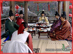 チャングムの 方では、 ハン尚宮は 明国の使者が 喜ぶだろうと思われる 豪華な食事ではなく