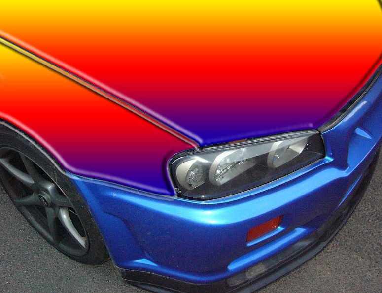 虹色に光り輝く車です。